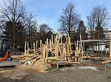 Im Oktober haben die Bauarbeiten für den neuen Kletterspielplatz im Uferpark begonnen. Inzwischen wurde die Holzkonstruktion, die die Form eines Seedrachens nachahmt, fertiggestellt. Auch der Fallschutz wurde eingebaut, dieser ist auch mit einem Rollstuhl befahrbar. In den nächsten Wochen folgen der Wasserspielbereich und die weiteren Arbeiten rund um das Spielgerät.